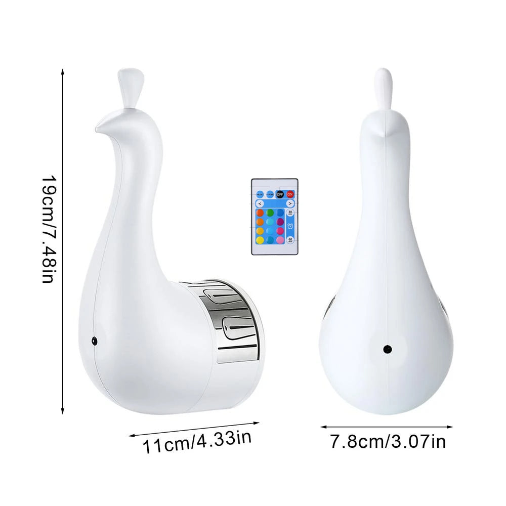 Create a romantic and cozy ambiance with the Peacock Projector Lamp, a perfect blend of elegance and functionality. Featuring a unique peacock feather projection, this lamp transforms any space into a serene sanctuary with adjustable brightness (2200-6000k) and 12 vivid colors. Its remote control and timer functions offer convenience, allowing you to set automatic shutoff at 30 or 60 minutes for peaceful sleep. The touch-sensitive interface makes operation effortless, while its removable wall-mounted design adds versatility to your decor. Made with durable metal, ABS, and silicone, it’s both stylish and reliable. Ideal for bedrooms, parties, or thoughtful gifting, this lamp enhances sleep, decor, and relaxation with certified quality and safety.